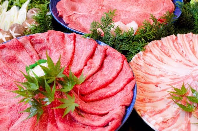 店主の夢でもあった精肉店直営だからこそできることを実現すべく焼肉、すき焼き、しゃぶしゃぶ、ホルモン鍋など取り揃えております。大小さまざまなお部屋または安土城跡地の山々が見わたせるテラス席でお召し上がりいただけます。