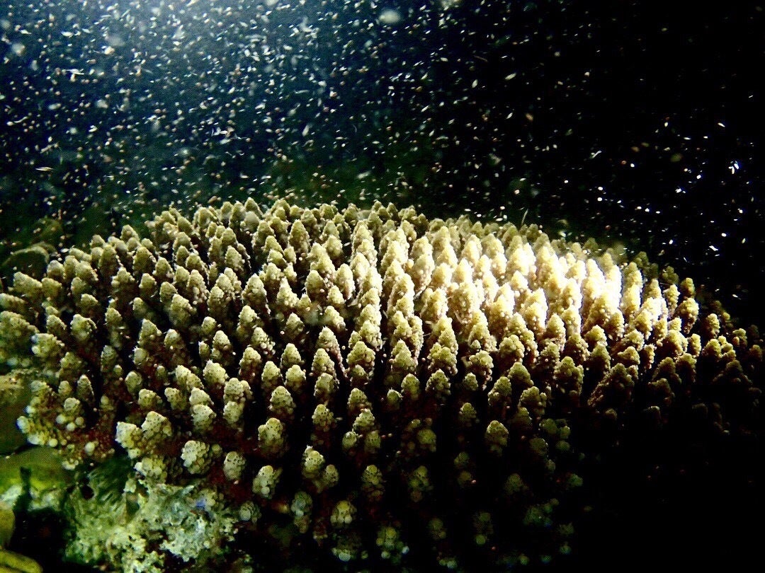 一つのサンゴが産卵を始めると、周りのサンゴも一斉に産卵し