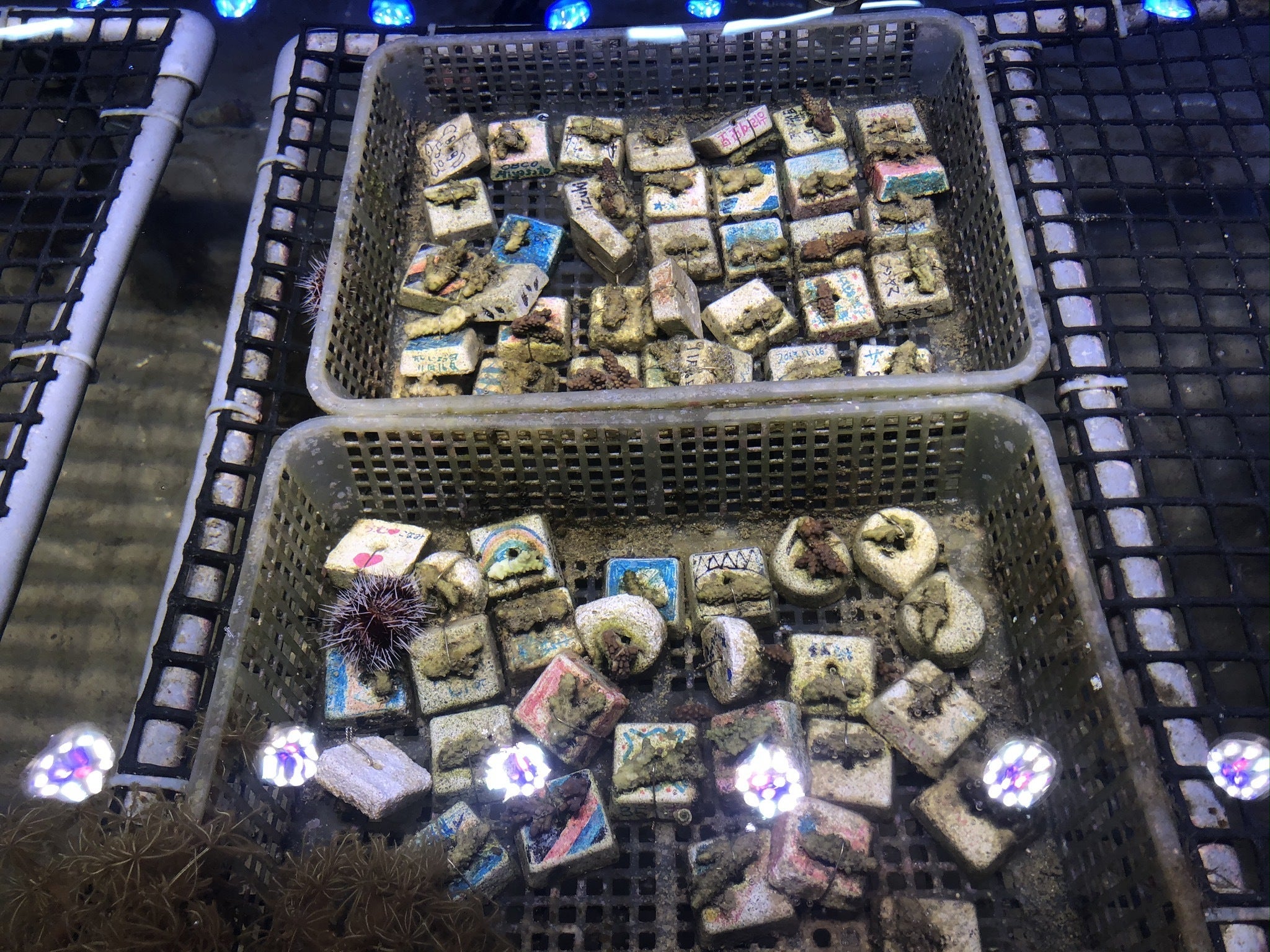 養殖中のサンゴの苗たち(まだ大きさは2~3cmほど)
