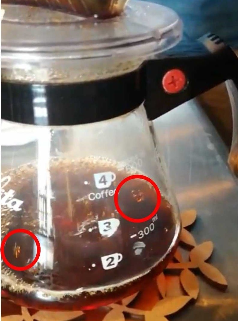 美味しい珈琲が淹れられた時にだけ現れる「珈琲の妖精」(赤枠の部分)。クリオネみたいにしばらくフワフワ踊った後に、スーっと消えてなくなります。