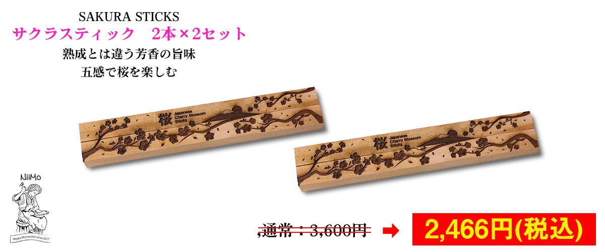 <リターン2 サクラスティック2本×ミズナラスティック2本 通常2,800円→2,233円(税込)>