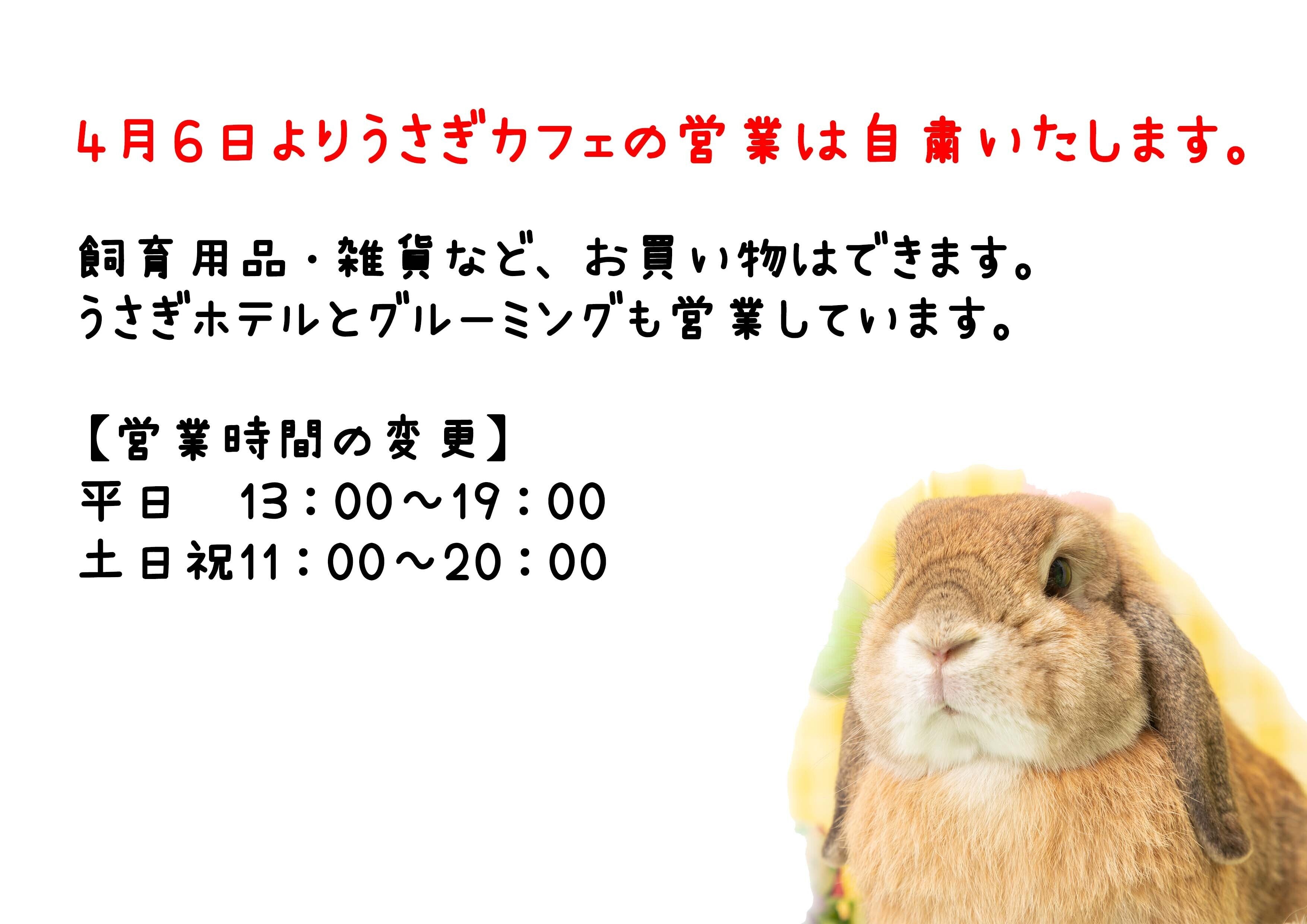 悩んで何度も話しあったのですが、感染拡大を防ぐため、4月6日からうさぎカフェの営業を自粛することにいたしました。