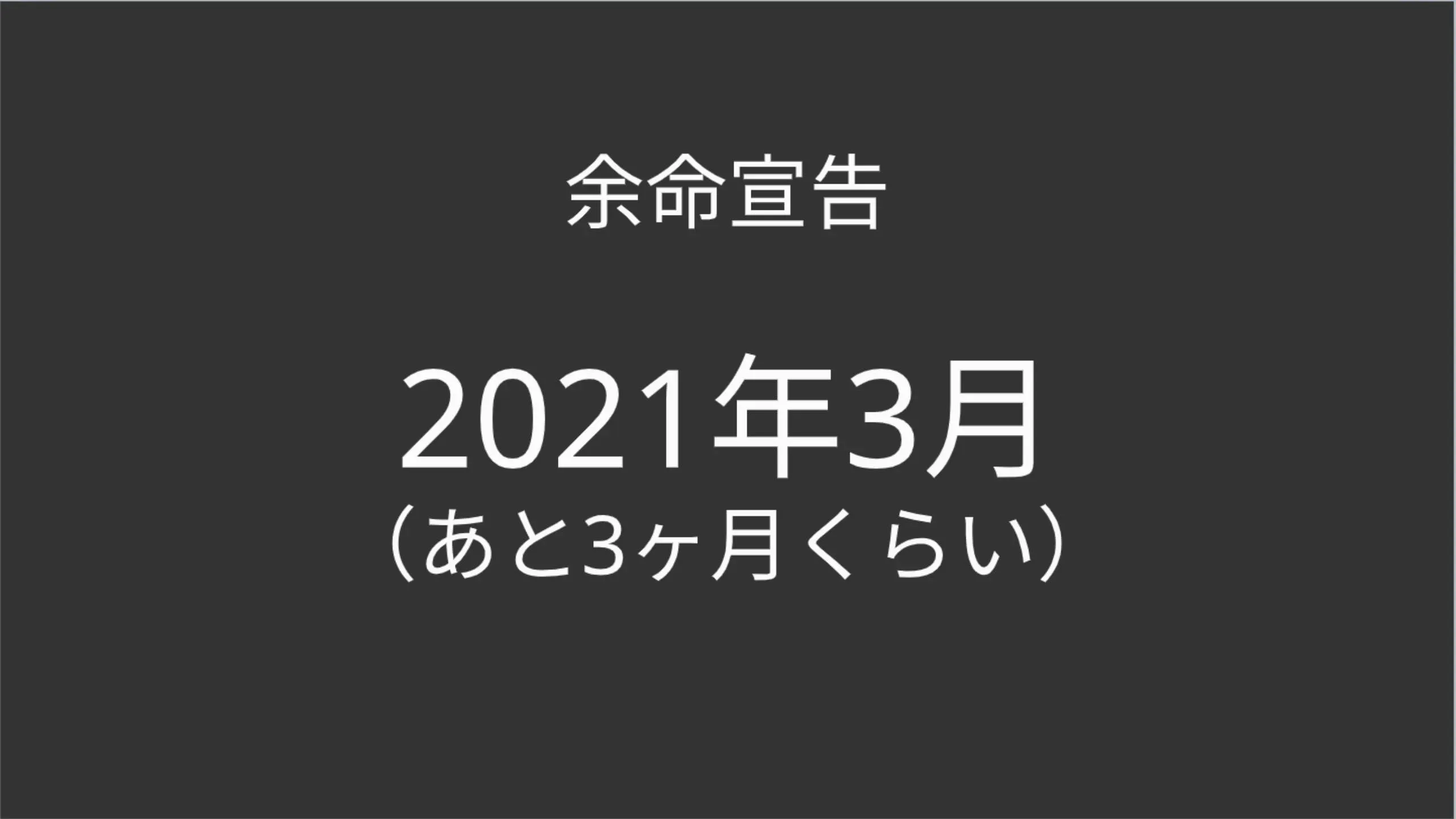 私は2018年の2月14日にステージⅣの末期癌と宣告され、2019年は迎えられないと医師に言われました。しかし、2020年12月の今、まだ生きています。