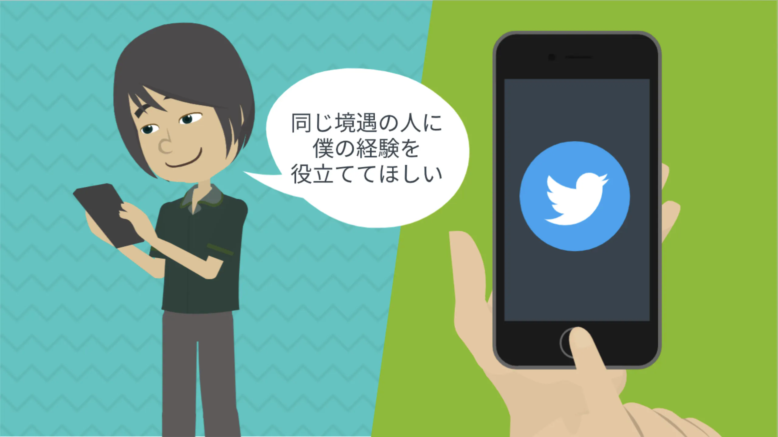 そして、自分のお話だけではなくて、病気で悩んだ方や、今悩んでいる方のお話なども聞いていきたいです。僕がそうしてもらってとても心が落ち着いたので、今度は僕が病気の方のお話をきいて励ましたいです。
