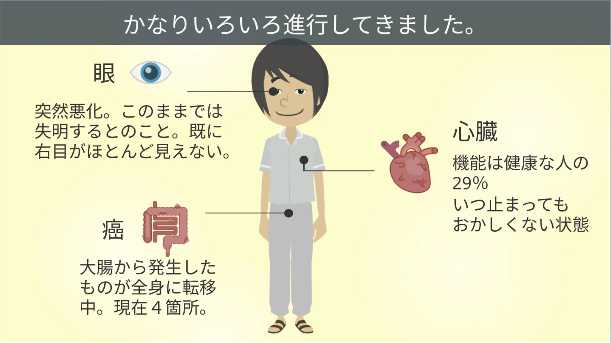 ある日、突然身体に電流を流されたような、医師の言葉。