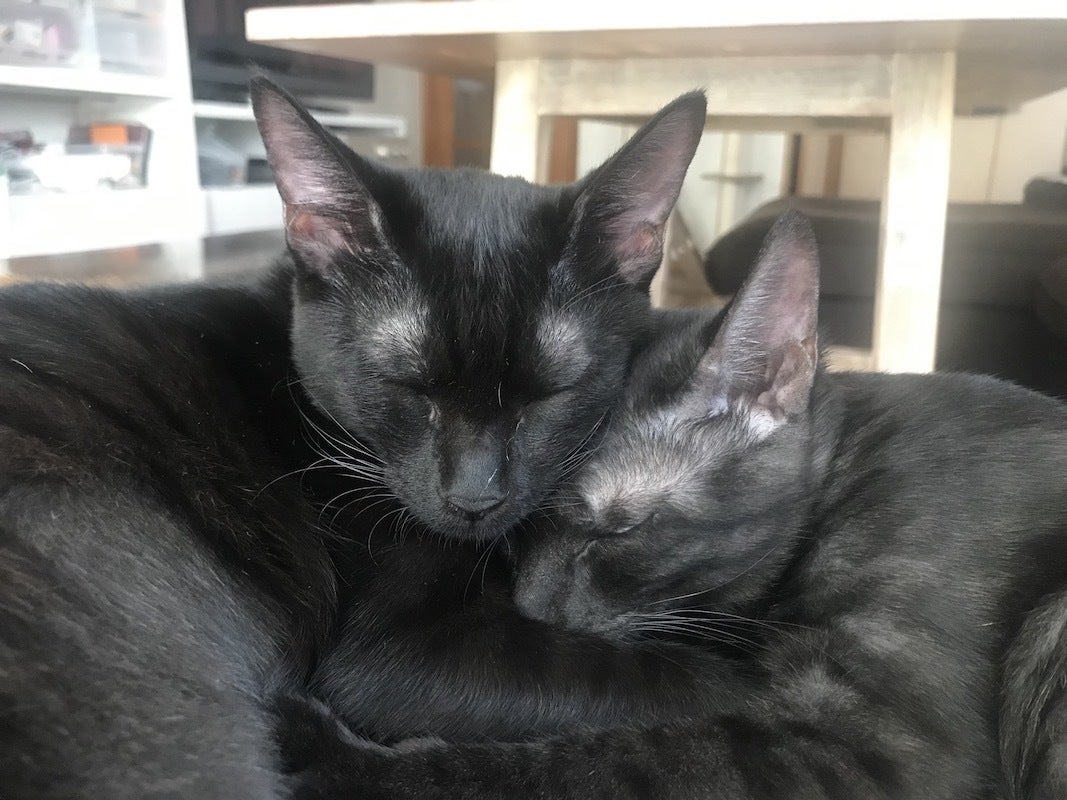 サミーとハンナは本当に仲が良く、助け合う姉妹猫でこの子たちを見ていると勉強になることばかりです。この子たちがこれからも幸せに健康に生活できよう、ハンナの命を助けたいです。