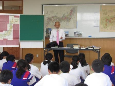 顕彰会の会員が講師となり、市内の中学校での赤水に関する講義の様子