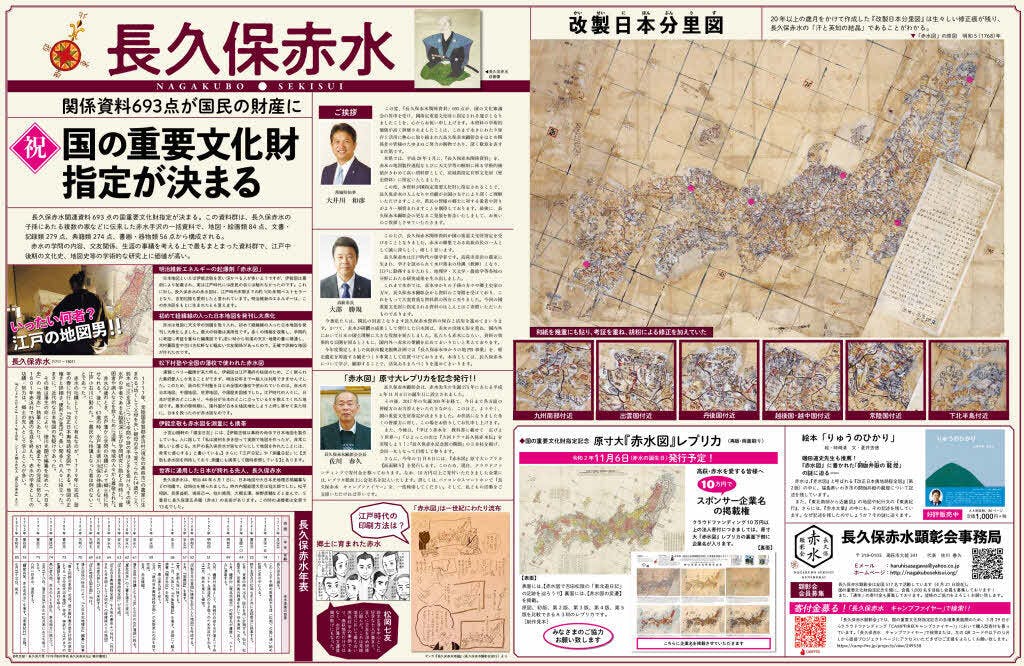 赤水資料が国の重文に指定され国民の宝になった事を記念して赤水の偉業を紹介し、顕彰会の夢の実現に向けてキャンプファイヤー殿にて初めての全国展開となる「原寸大レプリカ制作用購入型募金」の広告も掲載!