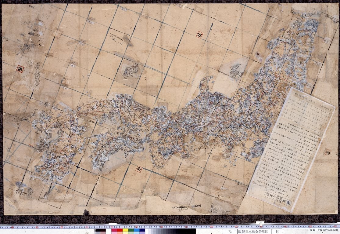 改製日本分里図84.6cm×134.8cm明和5年(1768)本図が、手描きの赤水図の原図。