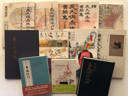 赤水の生涯と功績を讃え、広く赤水を知ってもらえる活動に取り組み、長久保片雲氏、横山功氏、横山洸淙氏らの会員と顕彰会とで多くの出版物を発行してまいりました。