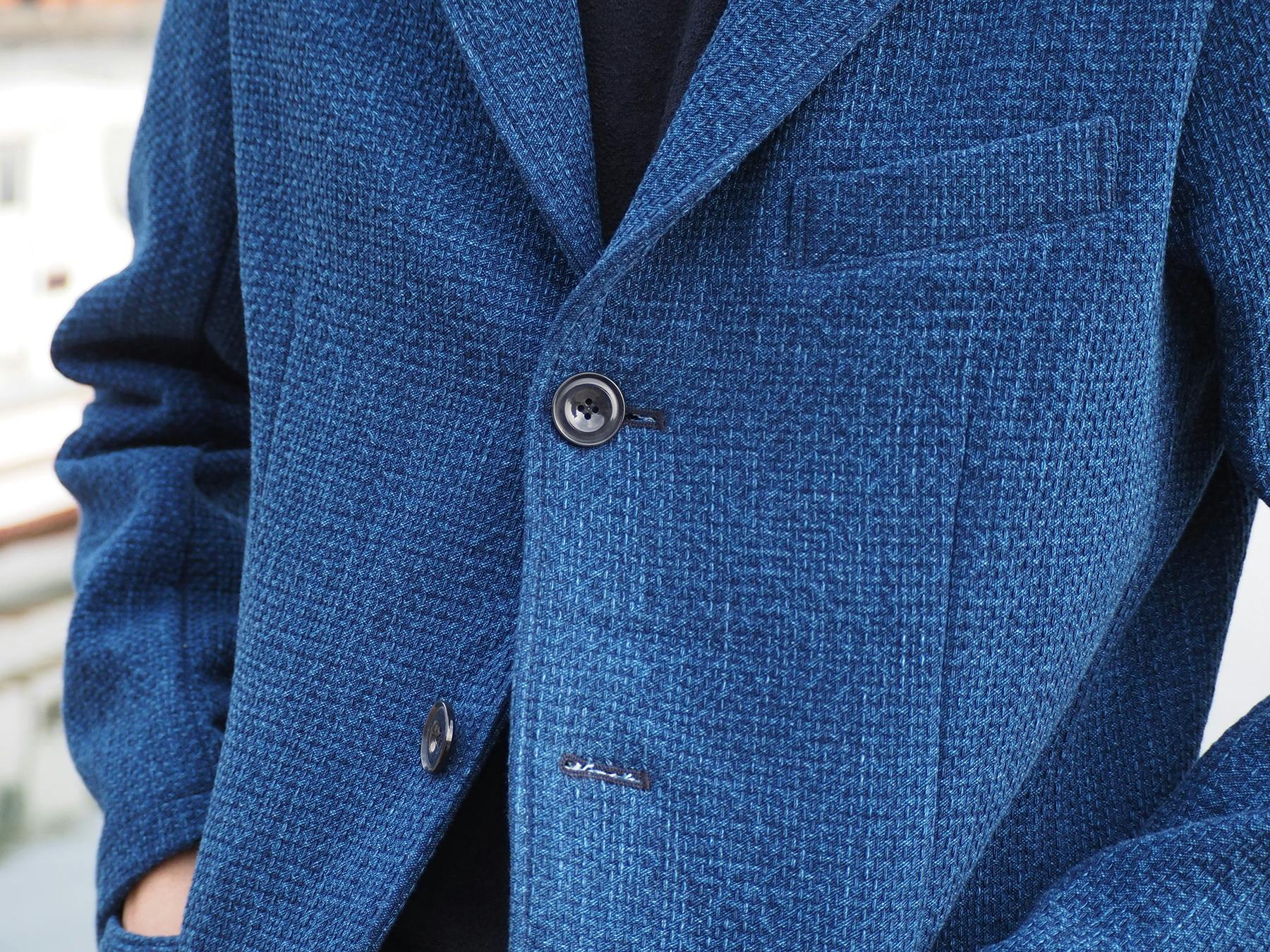 ともに日本の伝統である「刺し子」と「藍染め」の良さを再認識してもらおうという想いでジャケットを作りました。