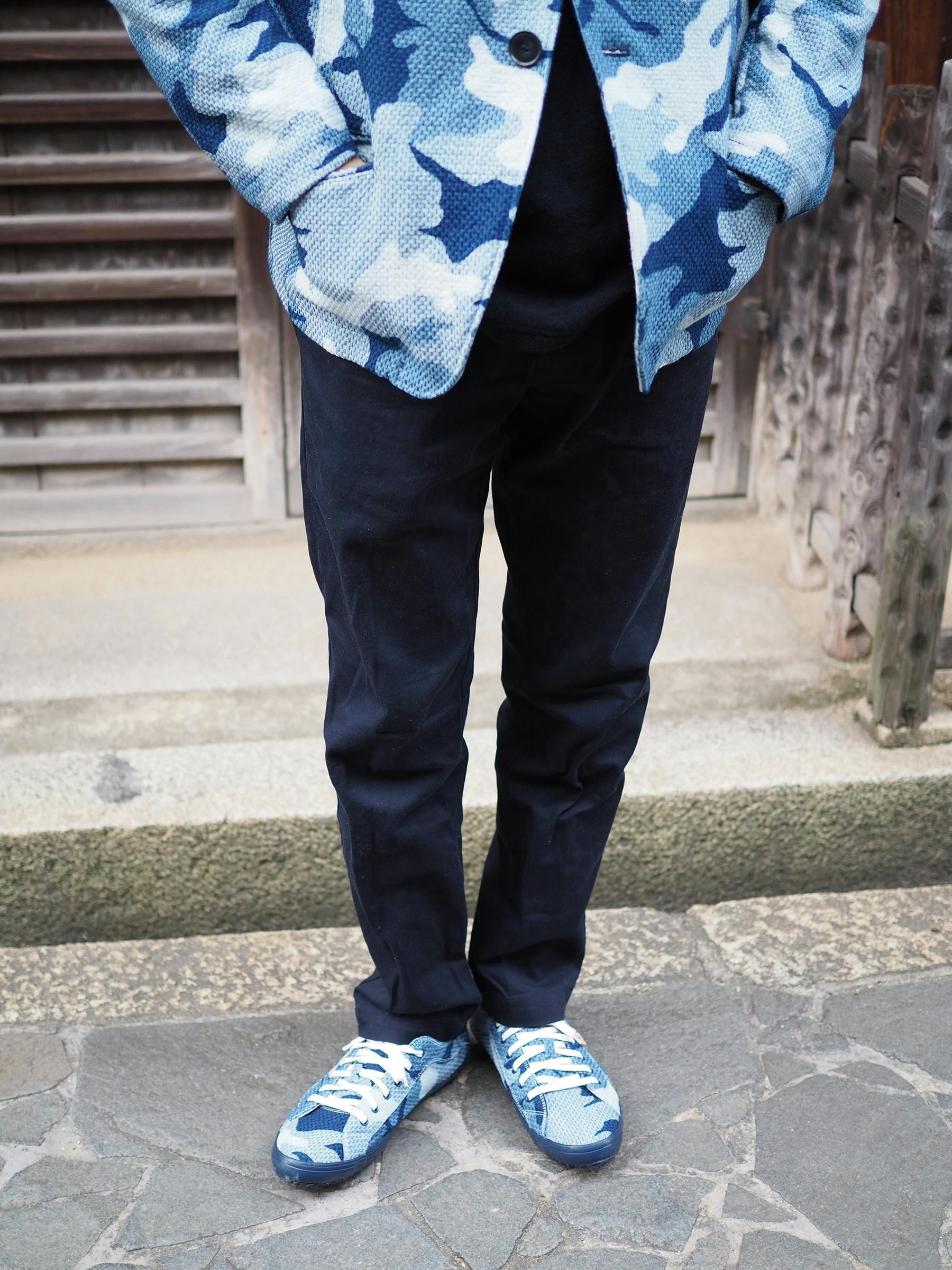 ・「刺し子」×「段落ち抜染」迷彩柄シューズ