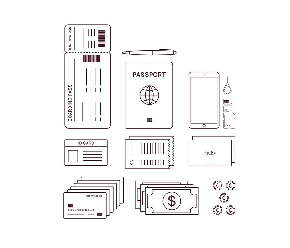 ⚫パスポート、搭乗券、申告用紙、ボールペン