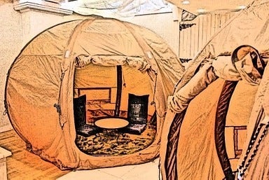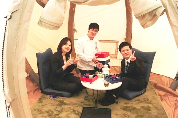 大分での「グランピングCOMOREBI」立ち上げを経験し、テントの中でくつろぎながらカフェやお食事を取る価値がとても良いリラクゼーションの環境とわかり、これをビジネス街のど真ん中にくつろぎのオアシスとして創り、