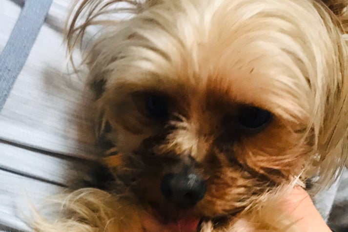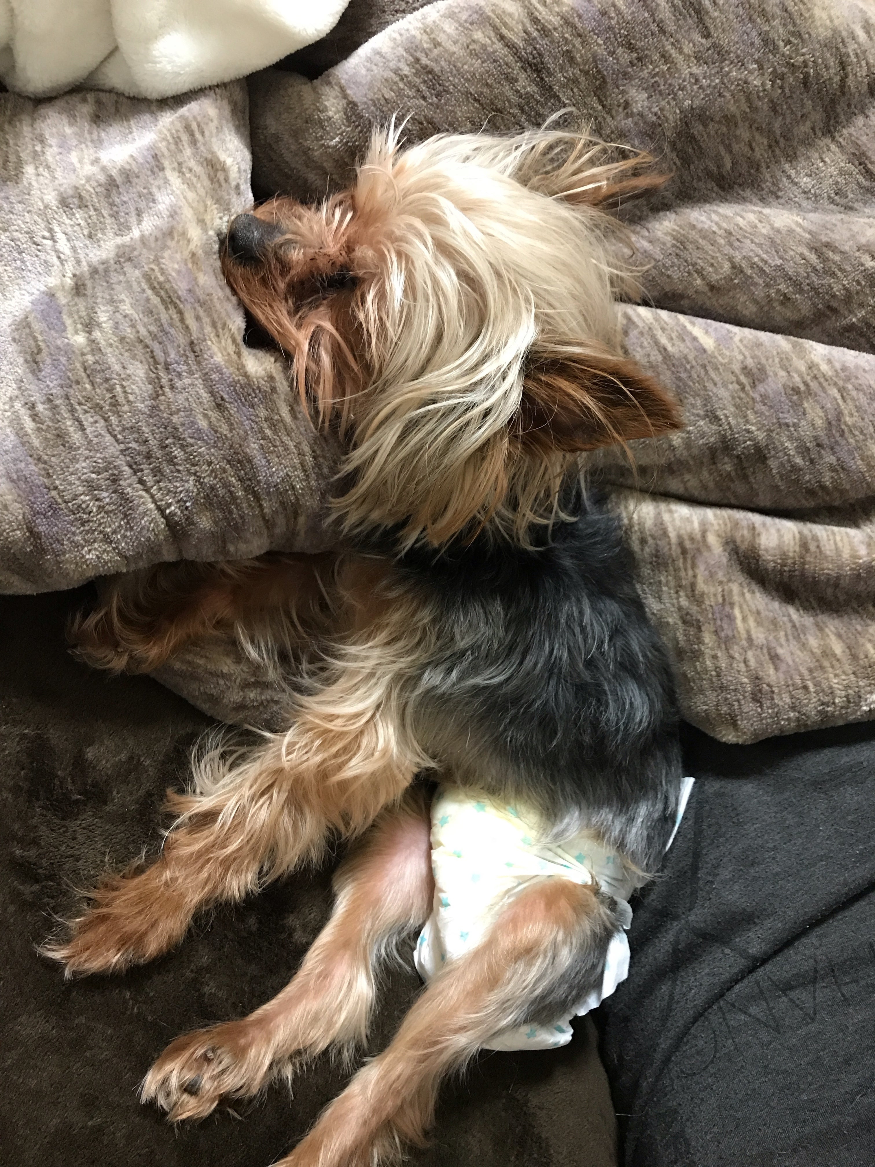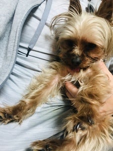 3/23、仕事から帰宅後愛犬のウィンくん(ヨークシャー)が、後ろ足を伸ばしたままひっくり返っていました。