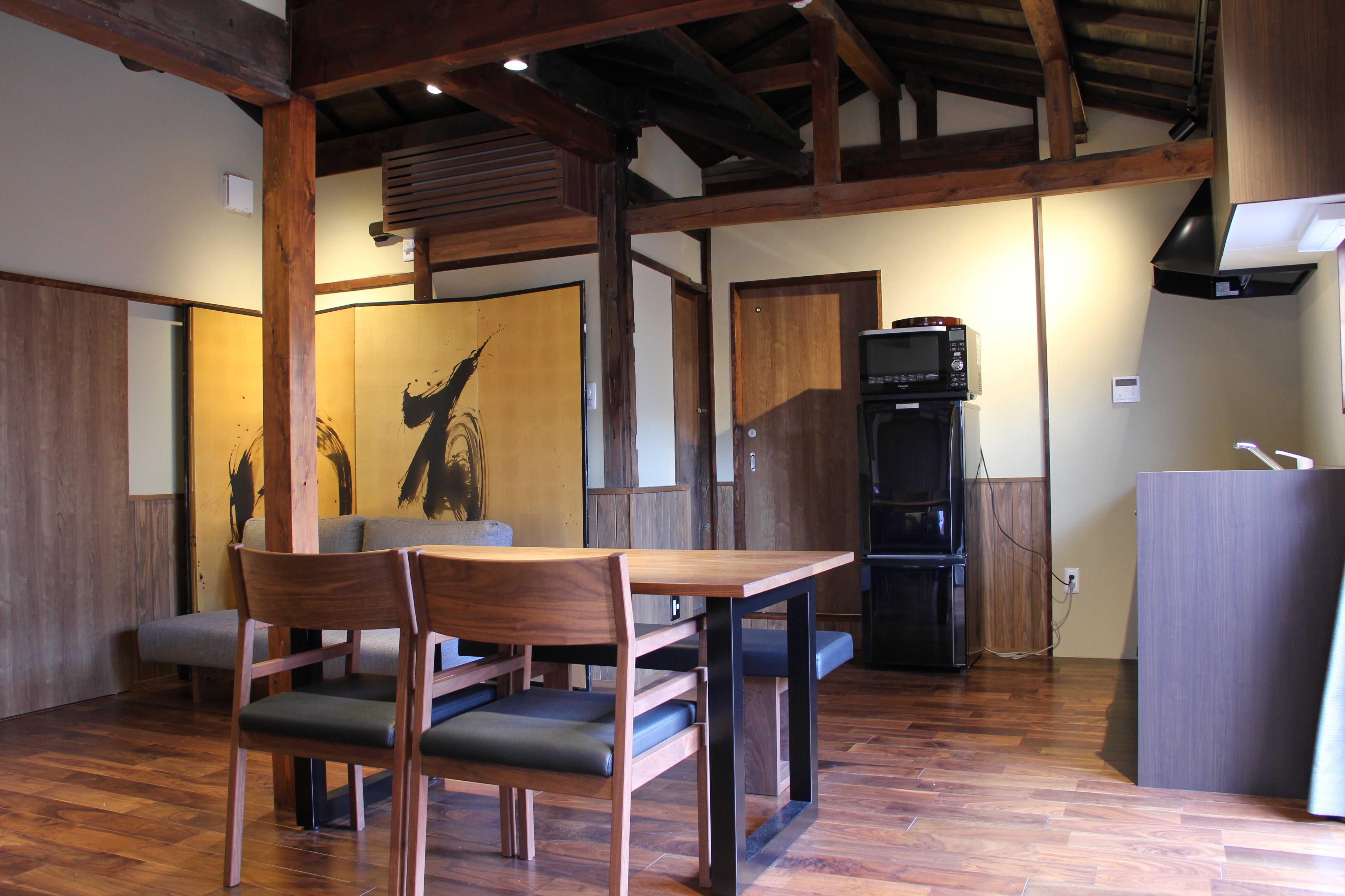 応挙・梅岩・了以の3棟からなり、当時の趣と美しさはしっかりと残しながら、現代の快適な生活ができるよう、水回りなど全面的に整えています。亀岡の伝統や歴史、現代の暮らしぶりを感じながら、思い思いのスタイルで過ごせます。
