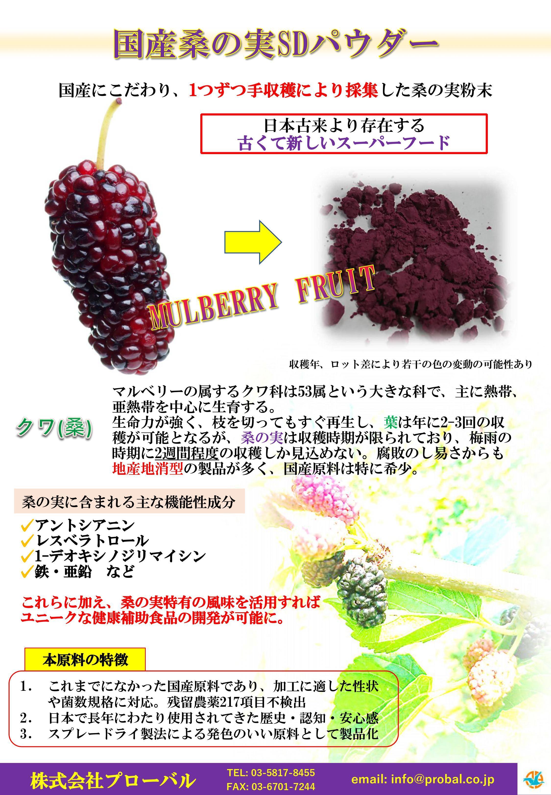 国産桑の実SD(スプレードライ)パウダーを袋詰めして製品化したものが、やさしさマルベリーです。スプレードライ製法とは、液体または液体・固体の混合物を気体中に噴霧して、高温で急速に乾燥させ“乾燥粉体”を製造する手法のことです 。桑の実果汁をぎゅっと閉じ込めた1品です。引き続きよろしくお願いします!!