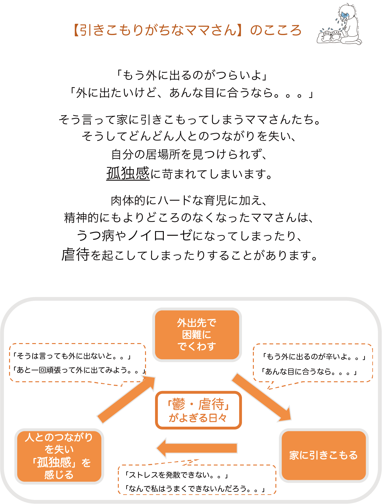孤立しがちな育児を、もっとオープンでもっと安心なものにしていきます。