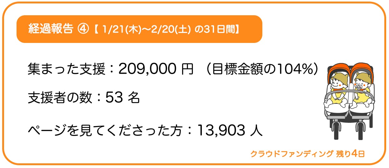 【集まった支援】 209,000 円 (目標金額の104%)