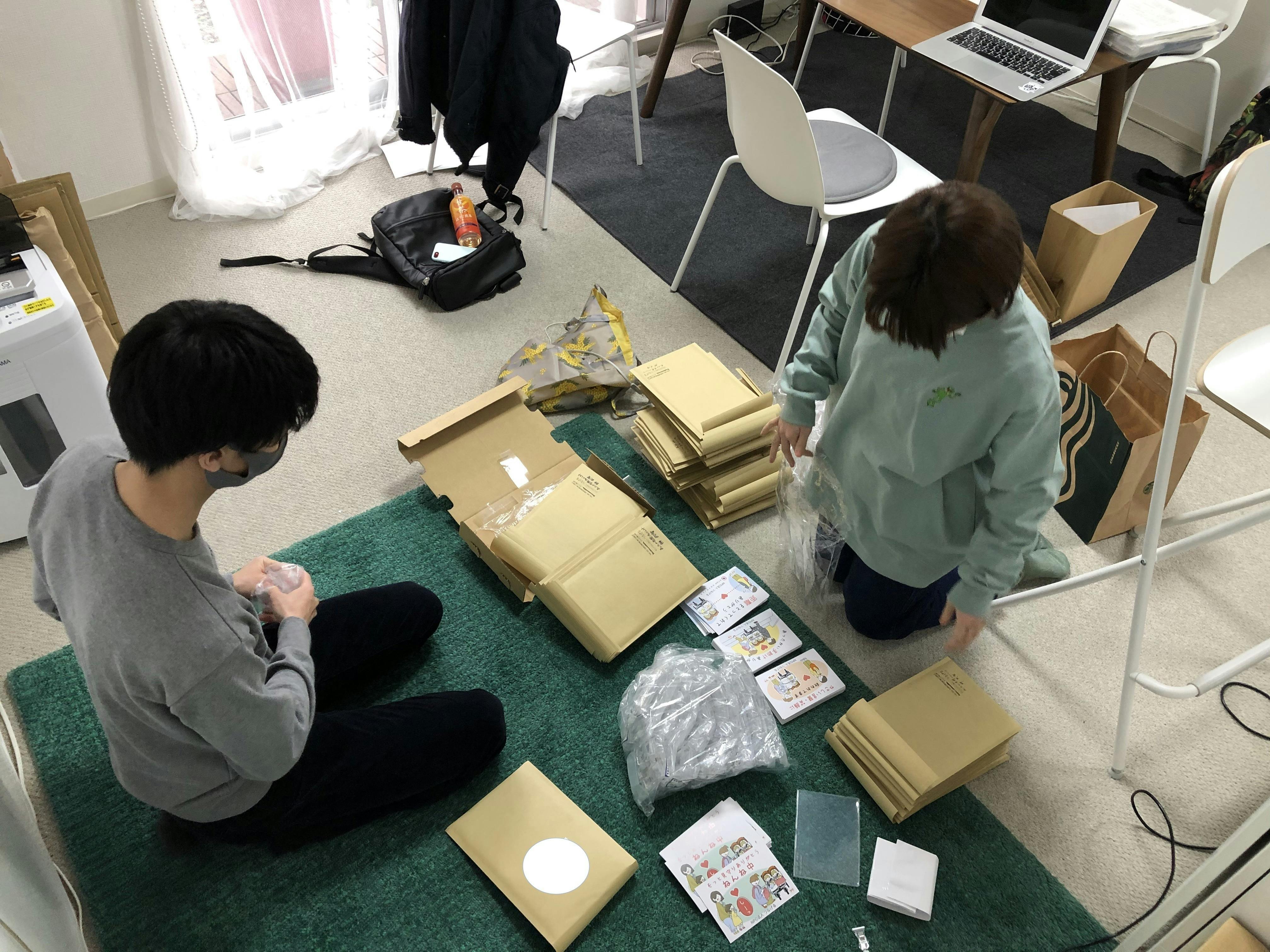 今週は塚口事務所にて、揃っているもので発送の準備を進めました。
