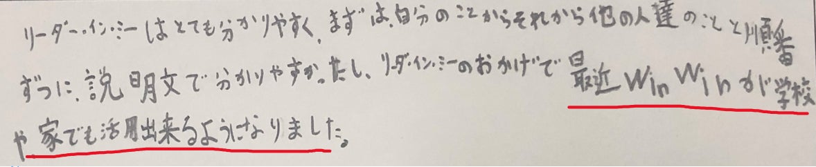近隣校の「リーダー・イン・ミー」導入に伴い、学校同士の繋がりが新たに生まれ、情報交換や授業見学をし合うなどし、より良い成果に結びつくこととなるでしょう。シナジーを発揮しながら、児童・教職員・保護者・学校全体から地域へと「7つの習慣」マインドが広がっていくことを楽しみにしています。