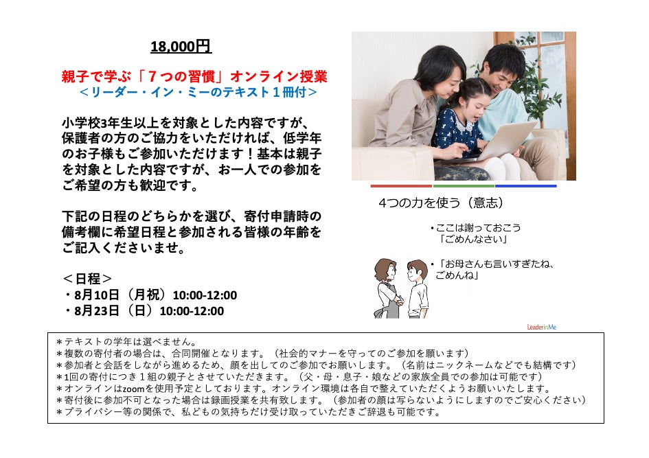 【新発売】オンラインで「7つの習慣」!リーダー・イン・ミー・アット・ホーム!!