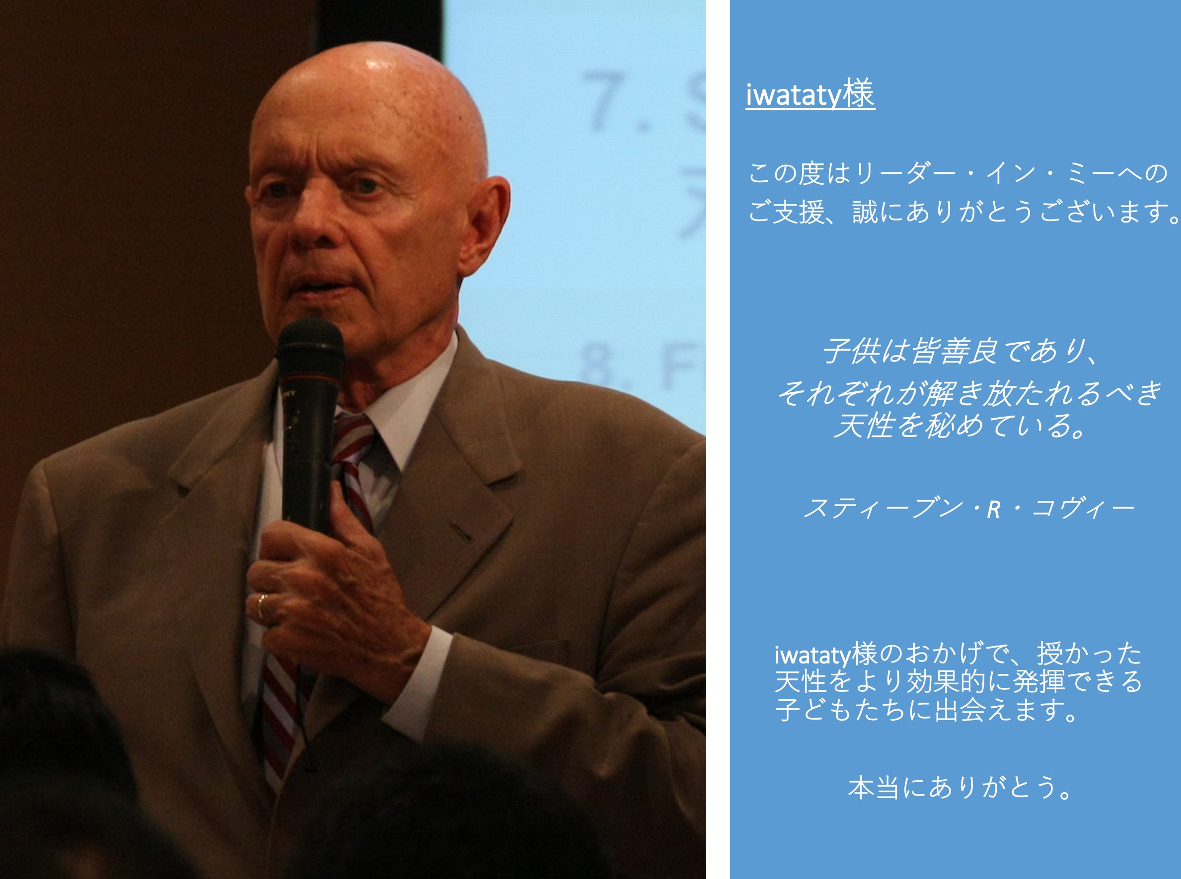 この度はリーダー・イン・ミーへのクラウドファンディングのご支援、誠にありがとうございます。心よりお礼を申し上げます。