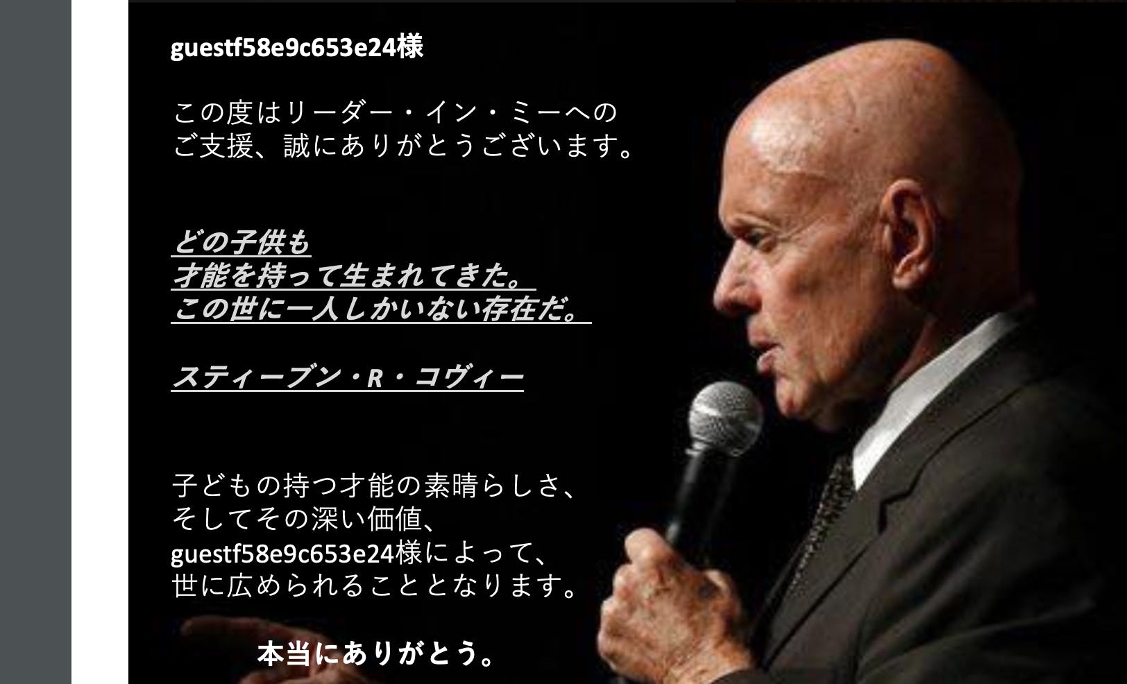 この度はリーダー・イン・ミーへのクラウドファンディングのご支援、誠にありがとうございます。