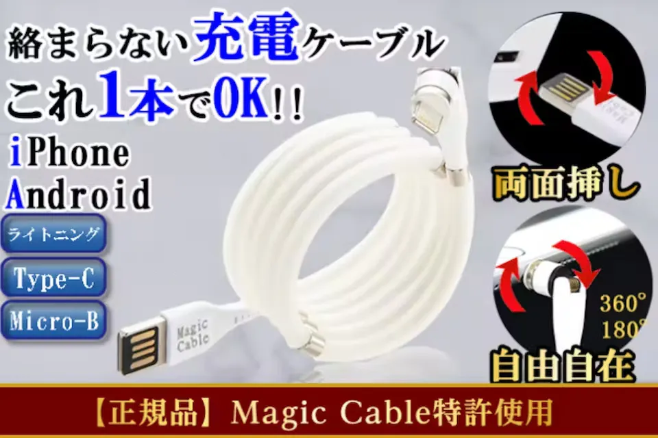 【お陰様で2周年】究極の両面挿しマグネットケーブル。絡まらずにワンタッチ充電!!