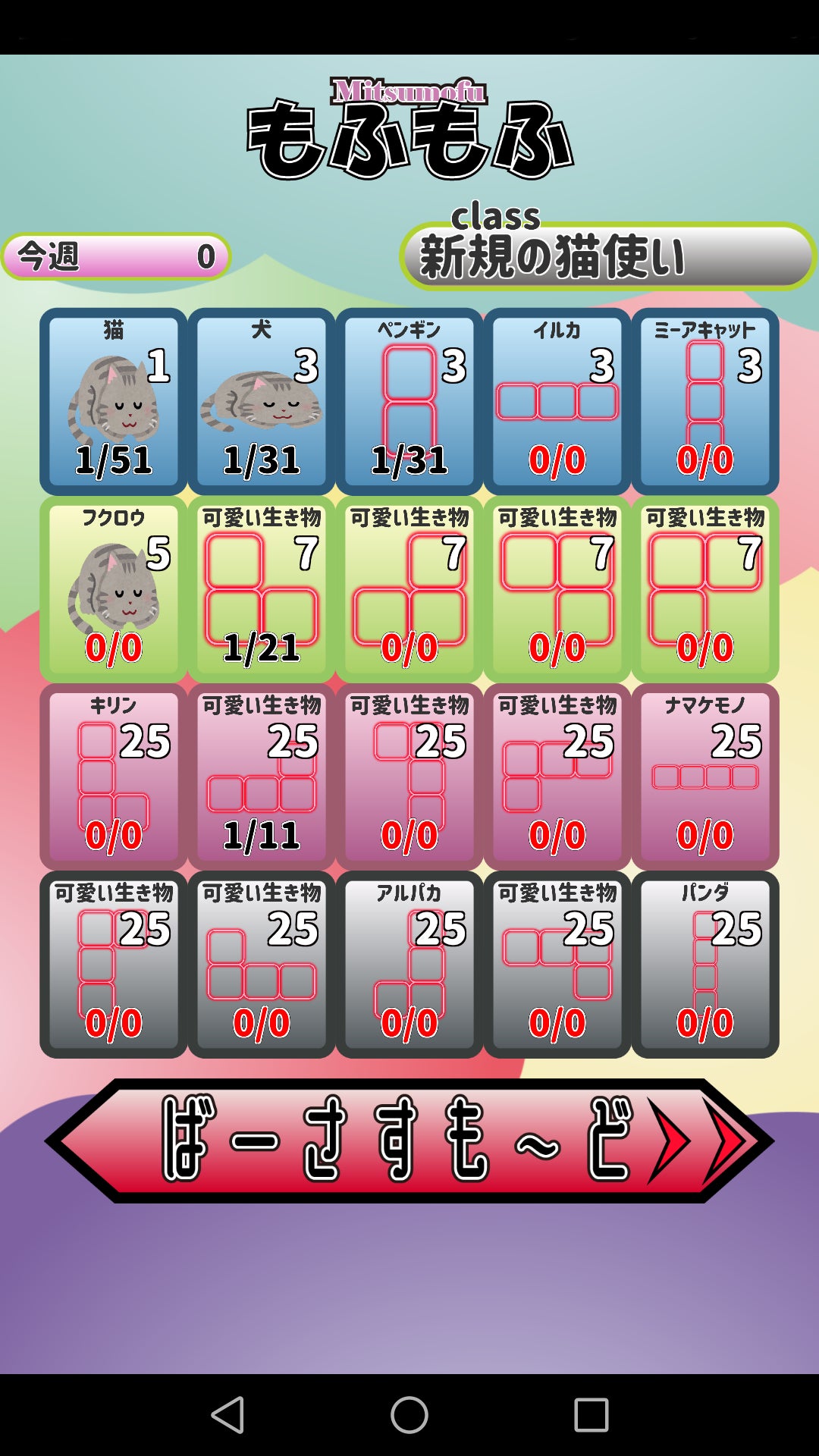 生き物の全身をくすぐる事で、その生き物をゲット出来る1人用のゲームです。
