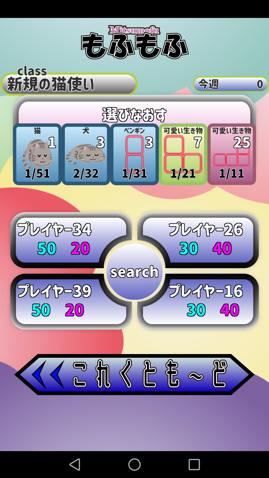 ゲームに使用する生き物を「これくともーど」で集めた中から選択し、ネット上の相手を決めます。