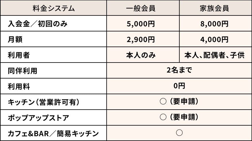⑤会費は月額2,900円~(ドロップイン利用検討中)