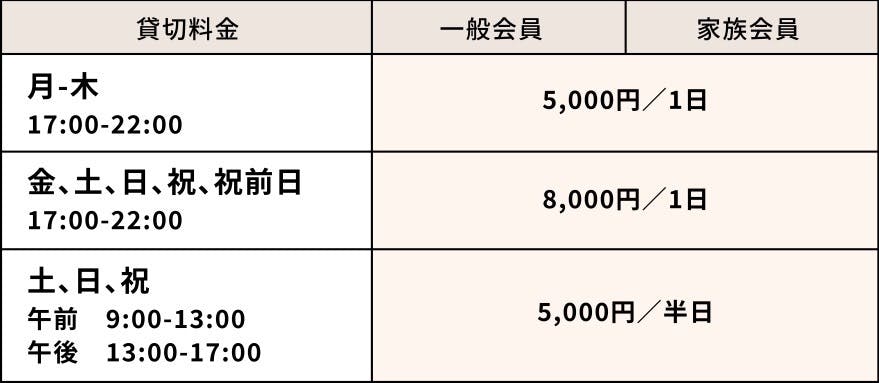 ①施設は365日使い放題(貸切日と22時~9時を除く)