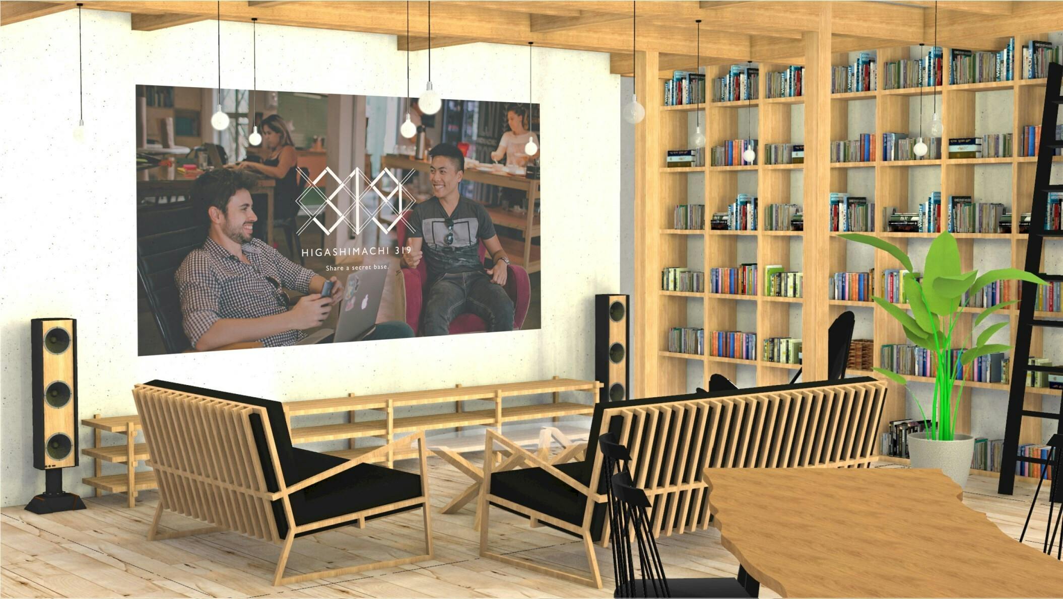 大スクリーンやプロジェクターなども設置予定。自分の好きな映画を見せ合ったりできる。