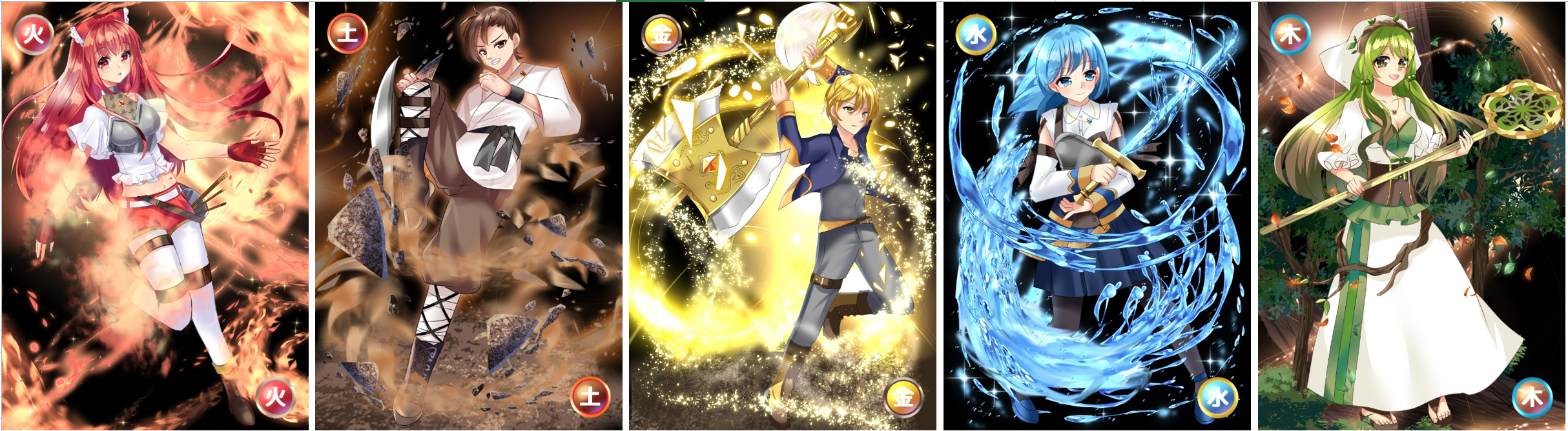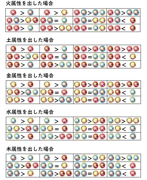 使用するのは、火・土・金・水・木の5種類のカードのみです。
