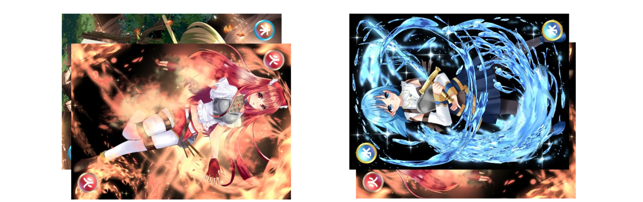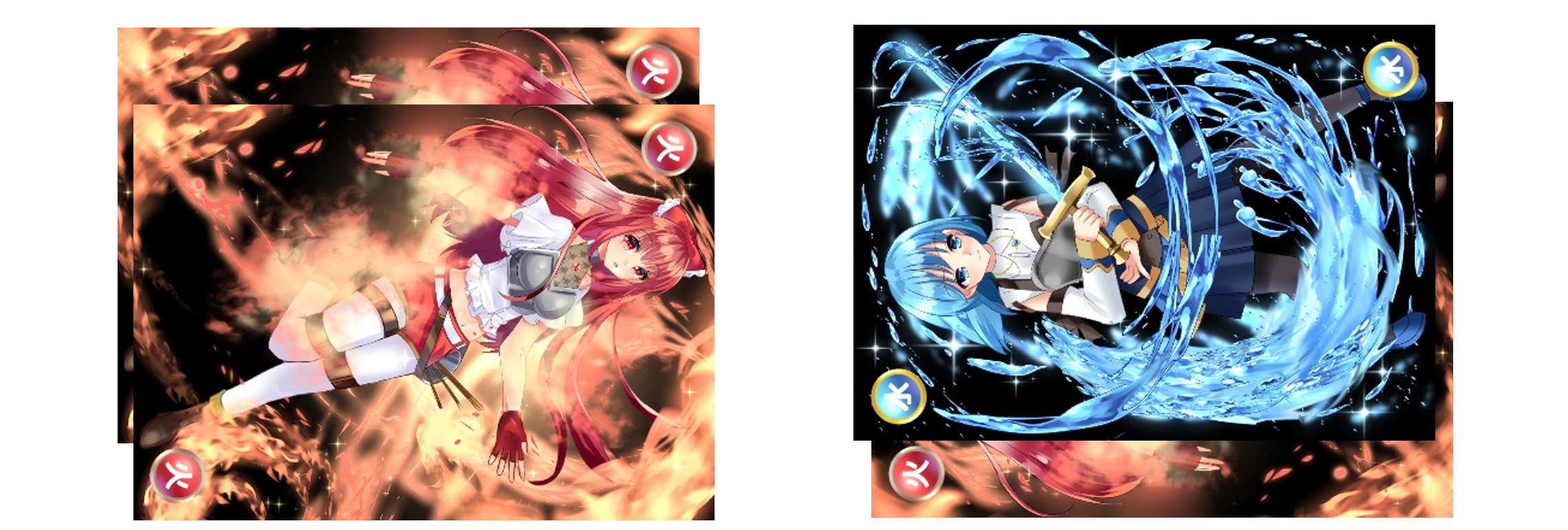 上の画像では、左側は火属性によって火属性が強化されているのにたいし