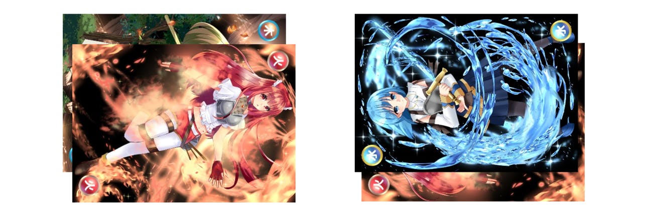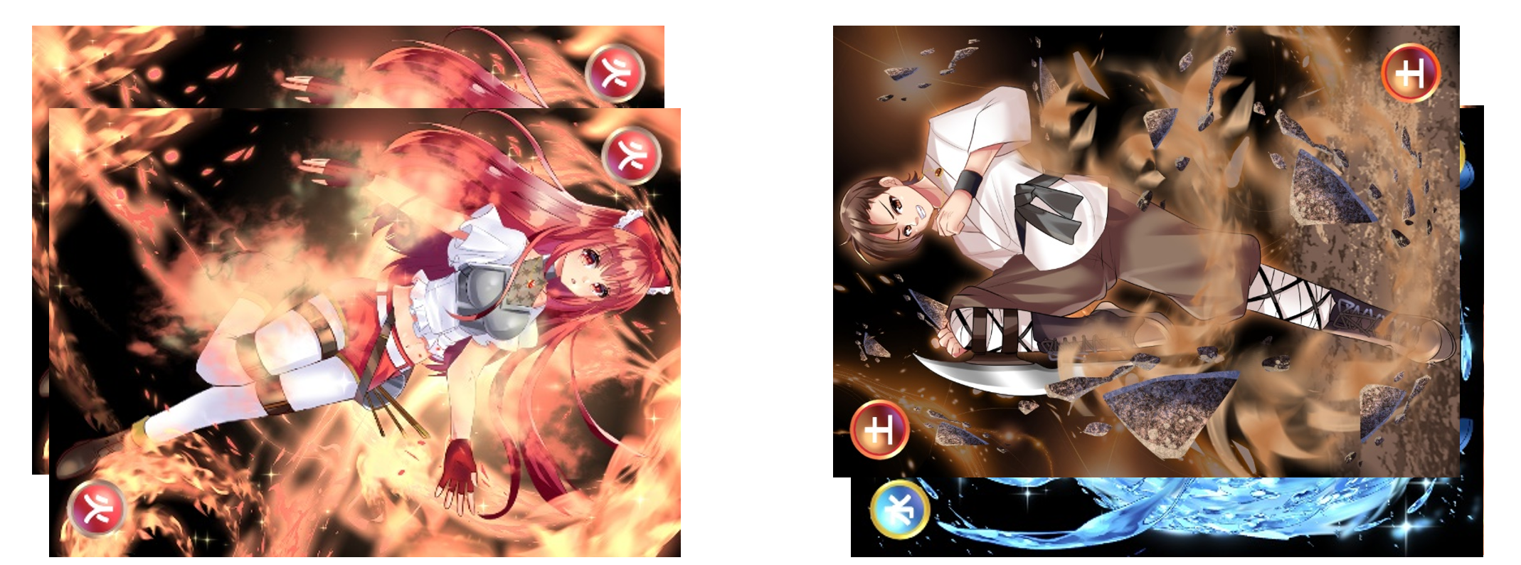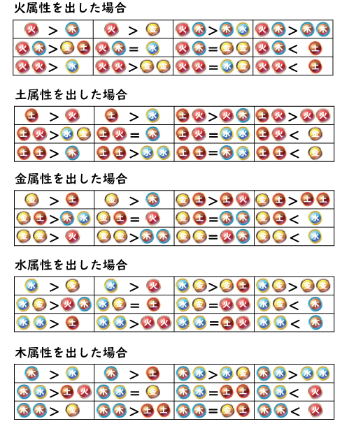 上の画像では、左側が木属性によって火属性が強化されているのにたいし