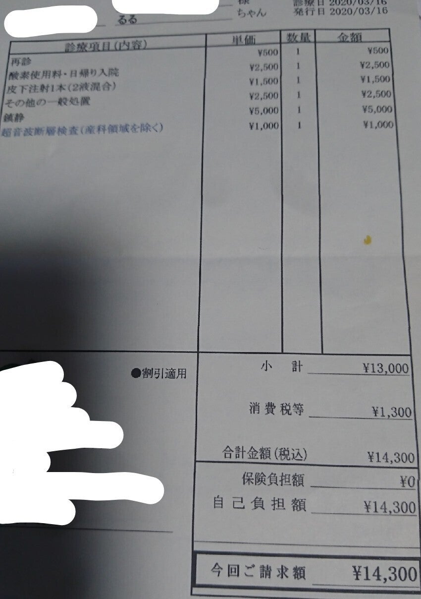 3/23日に『るるちゃん』の体重が1.9㌔になり、先生に電話でお話をすると、次からは50mg追加(¥1320税込)になるかもな。