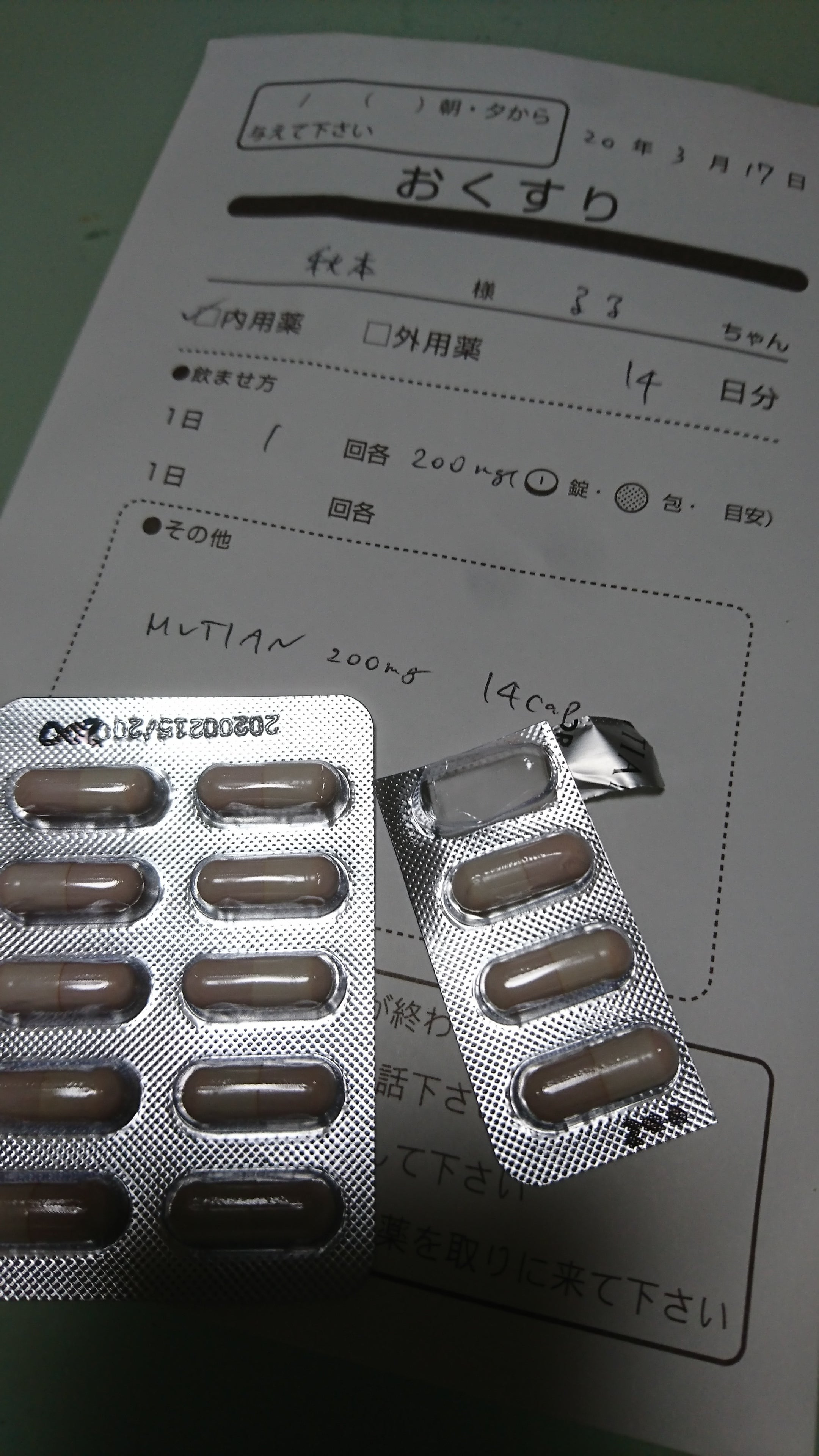 3/17に2週間分のMUTIAN200mgを14日分購入しました。