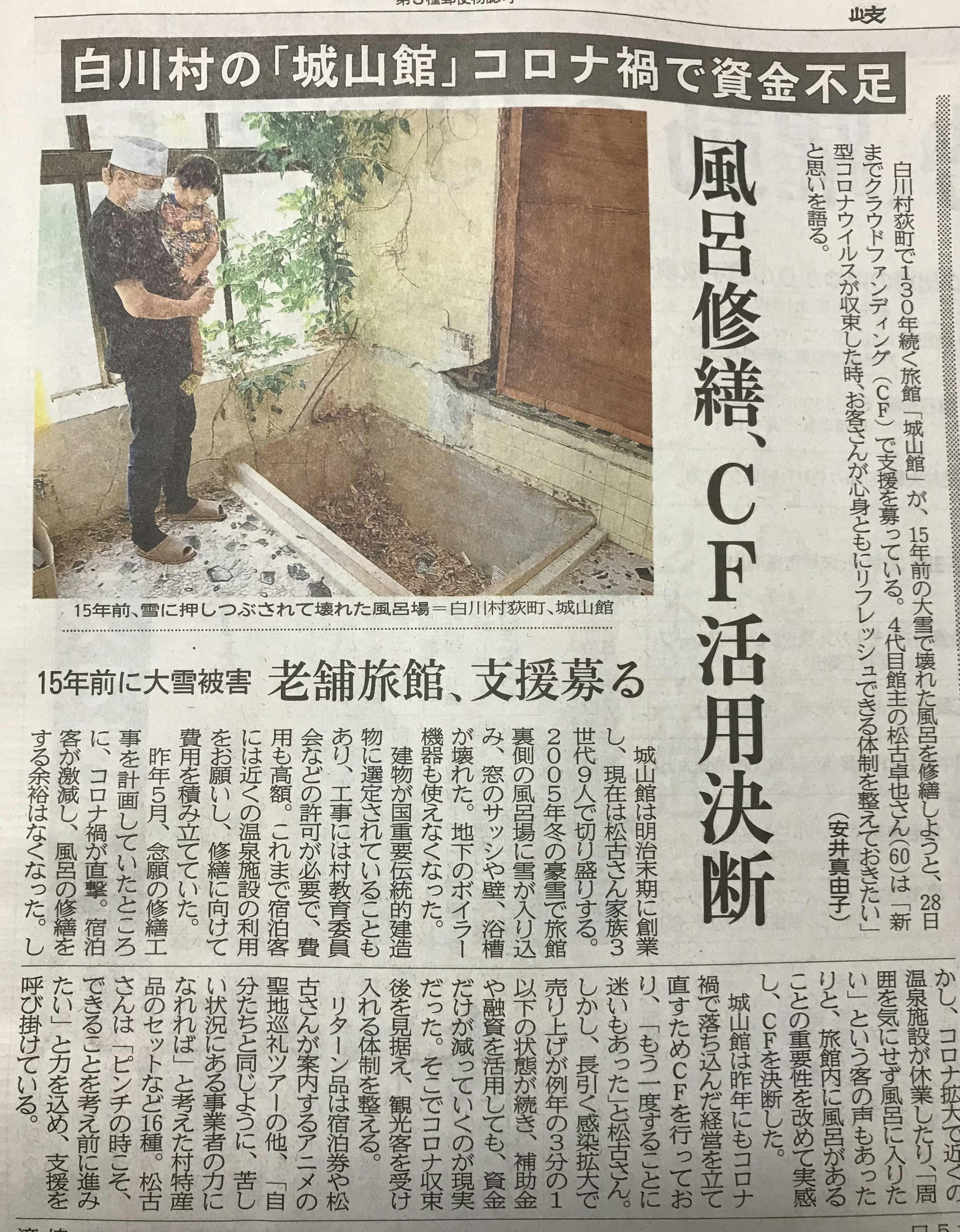 本日9/7付の岐阜新聞の飛騨版に、当プロジェクトの記事を掲載していただきました!