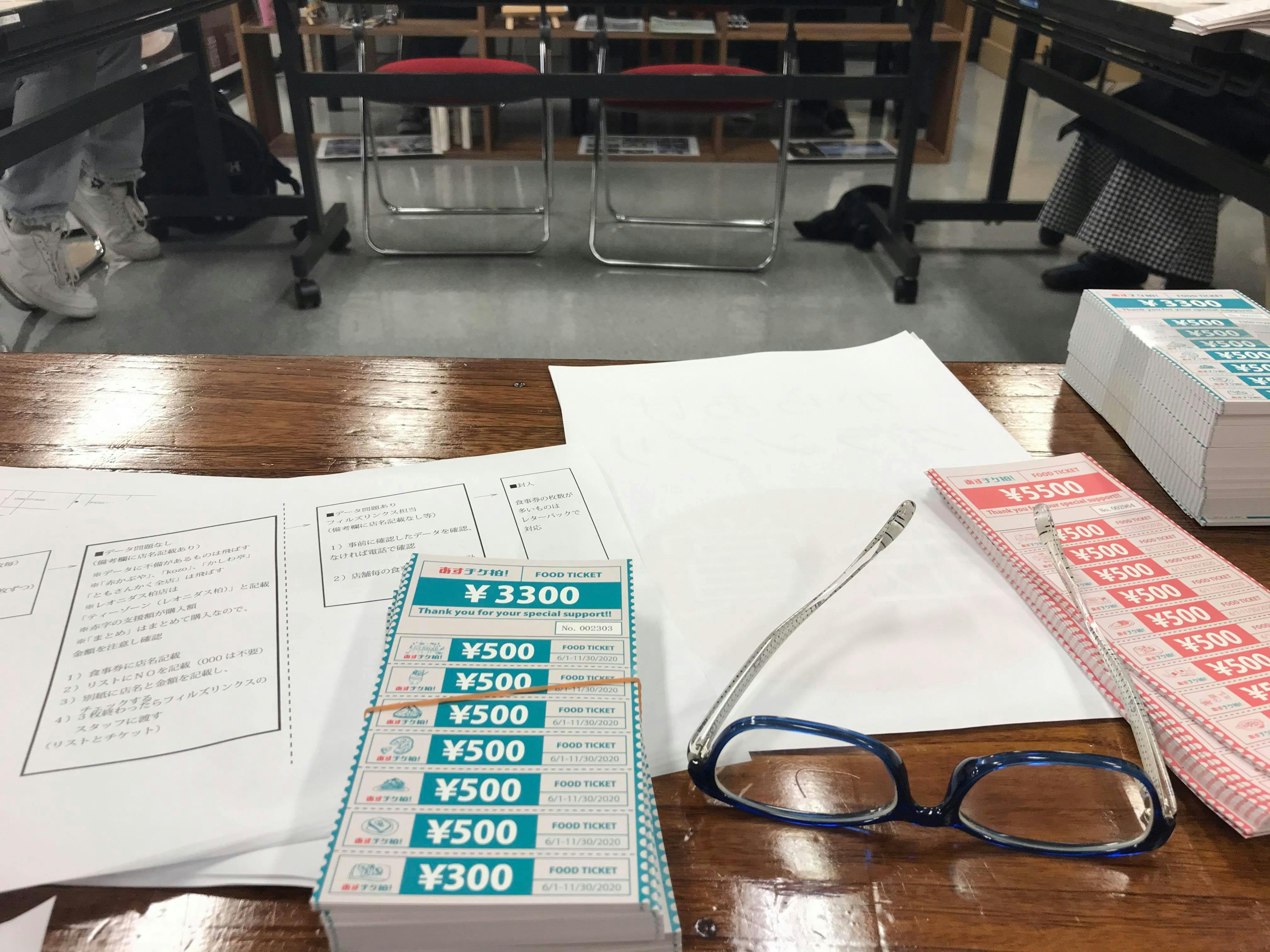 現在事務局を中心にお食事券の仕分けと発送作業に取り組んでおります。