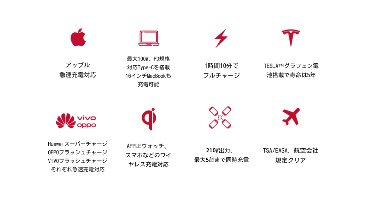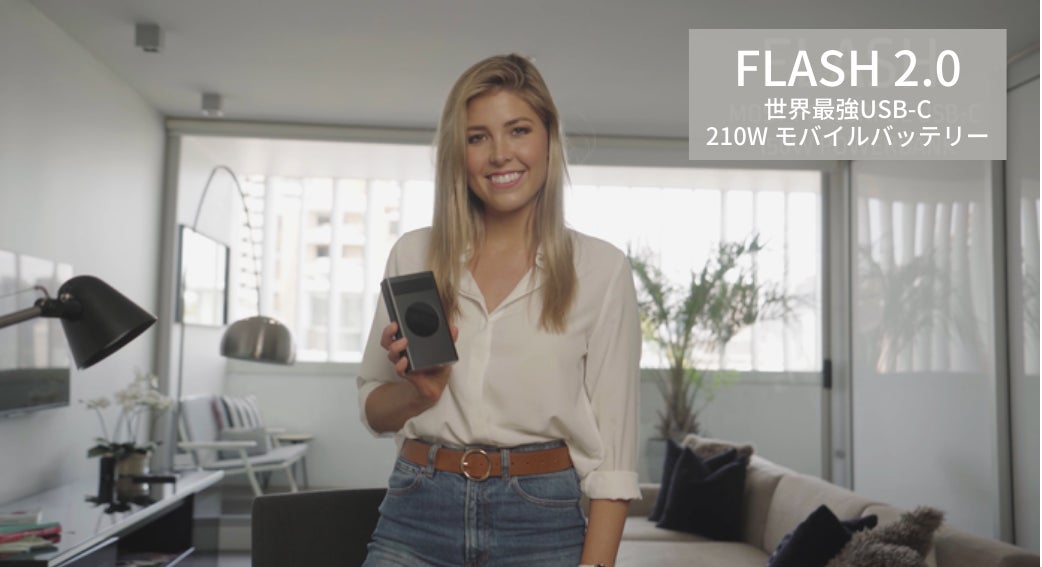 『Flash(フラッシュ)』: 世界で最もパワフルな210W、Tesla™グラフェン電池を搭載したUSB-C機器対応のモバイルバッテリー
