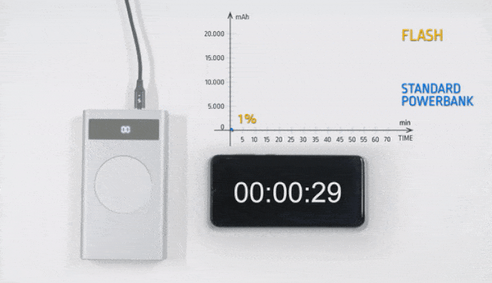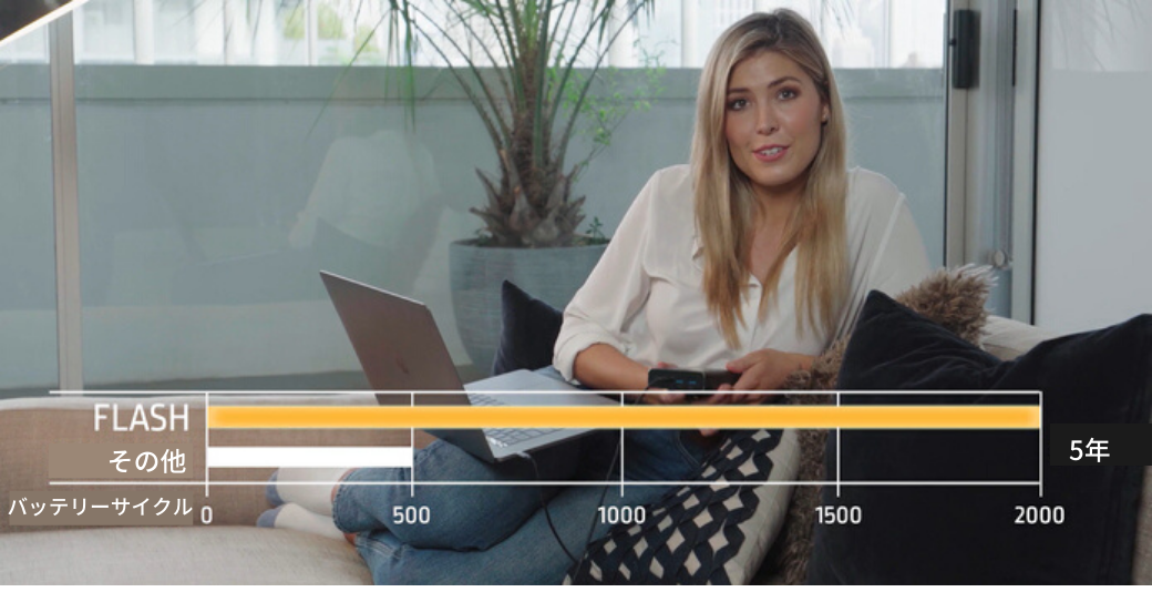『Flash (フラッシュ)』は35分間で80%の充電が可能。わずか1時間10分間でゼロからフル充電が可能です。
