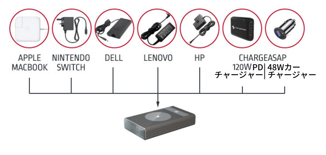 はい。ただし、100W 入力を使う必要があります。100W 以下を使用すると 充電時間が遅くなります。この出力数を実現する製品をお持ちでなければ、付属商品として一緒にご支援いただけるInfinityケーブルとウォールチャージャーをご検討ください。