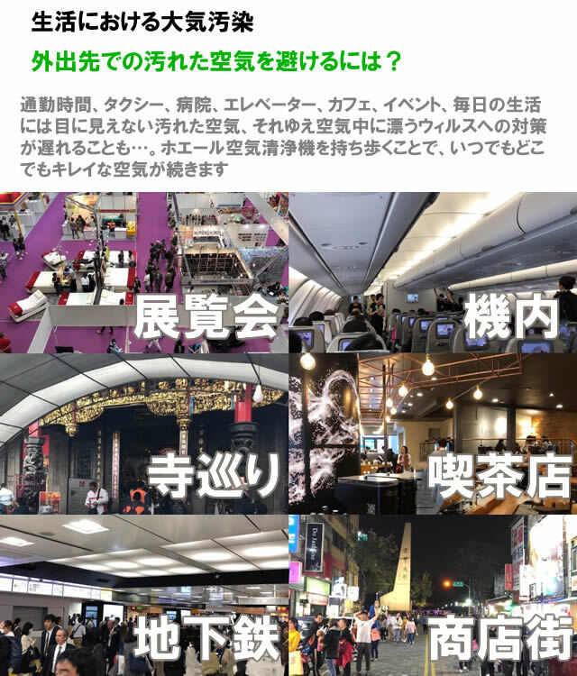 花粉 ウィルス 細菌 PM2.5 ホルムアルデヒド 化学物 等への外出先での対策に。