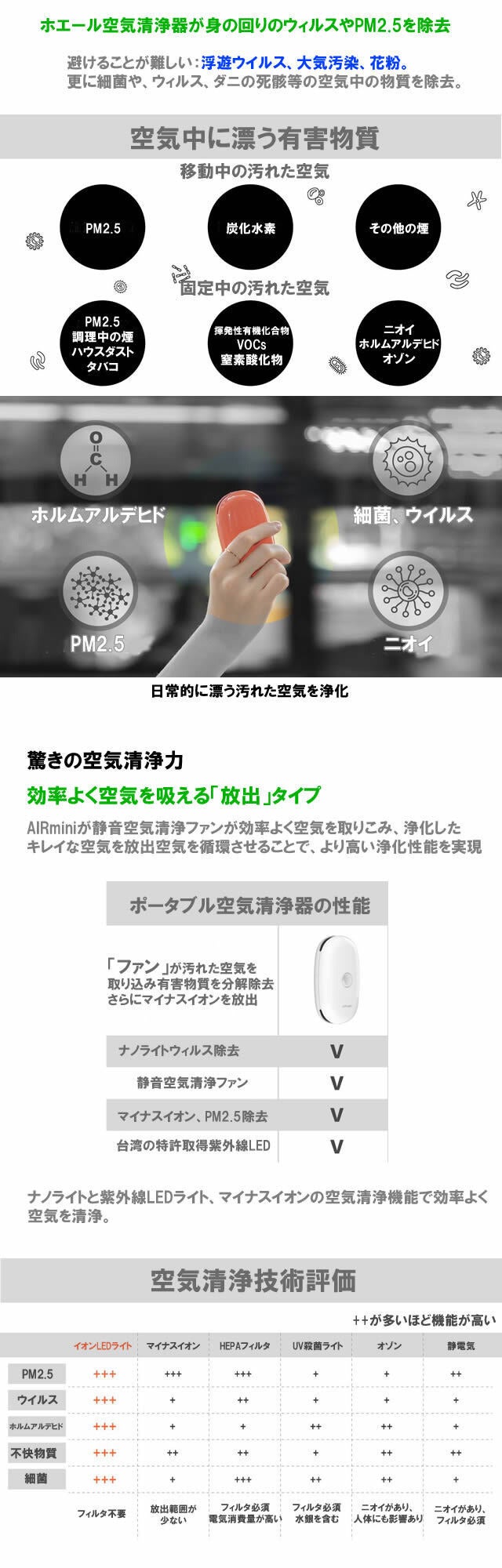 そんな状況でもこのAir miniがあればいつでもきれいな空気を持ち運べます。