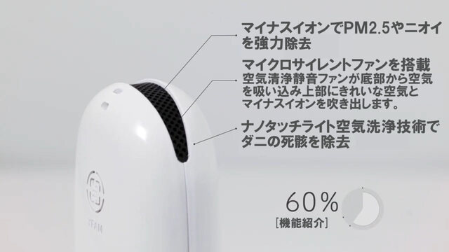 また本体内部で2000万個ものマイナスイオンを発生させ、空気清浄を終えたキレイな空気と共に放出します。