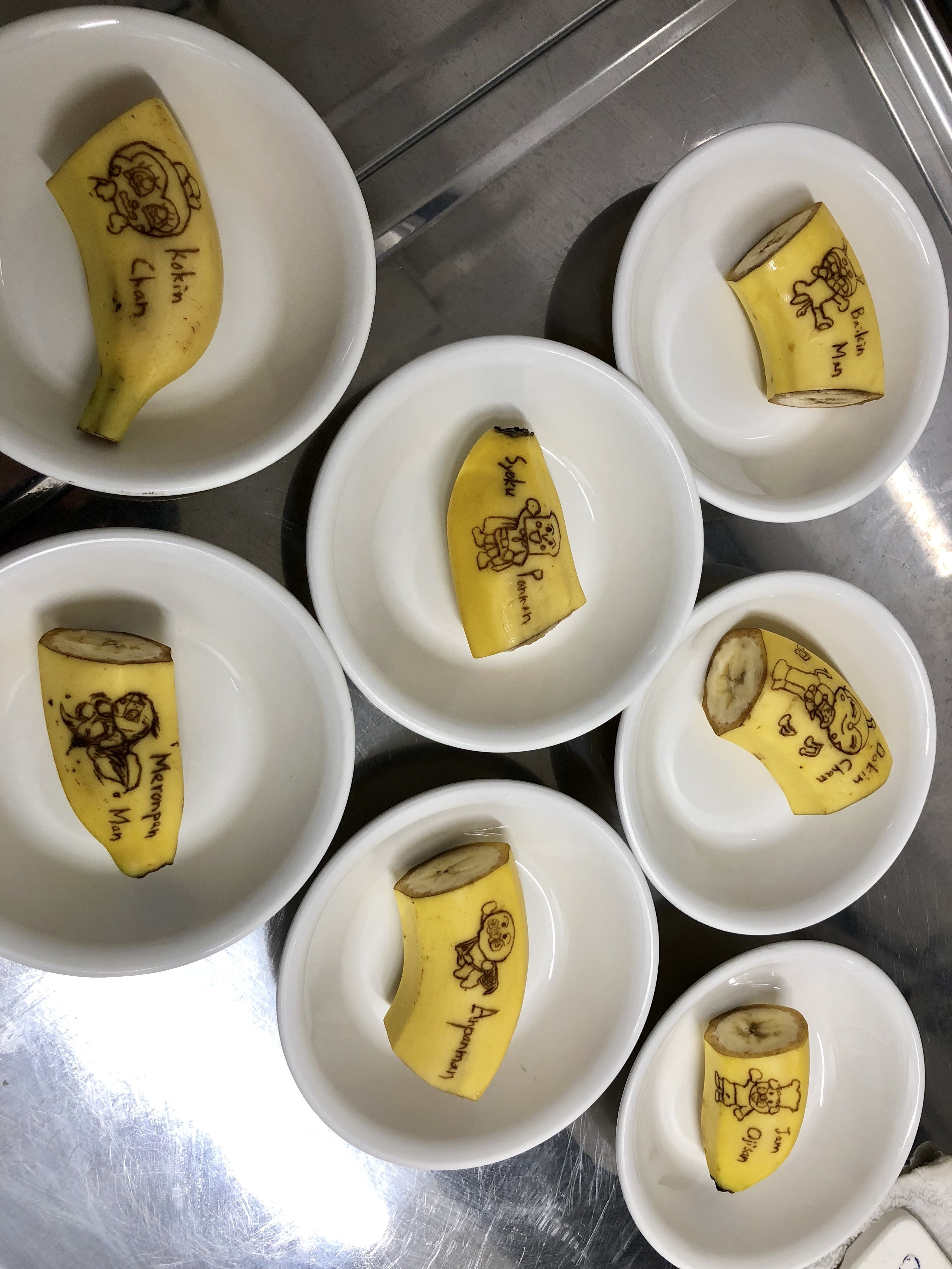 バナナの皮に絵を描く事で、バナナが苦手な子も喜んで食べてくれました。