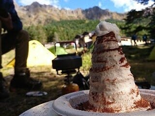 山のキャンプ場で本格的な料理やデザートを作る出張シェフ「山のパティシエHisa」です。