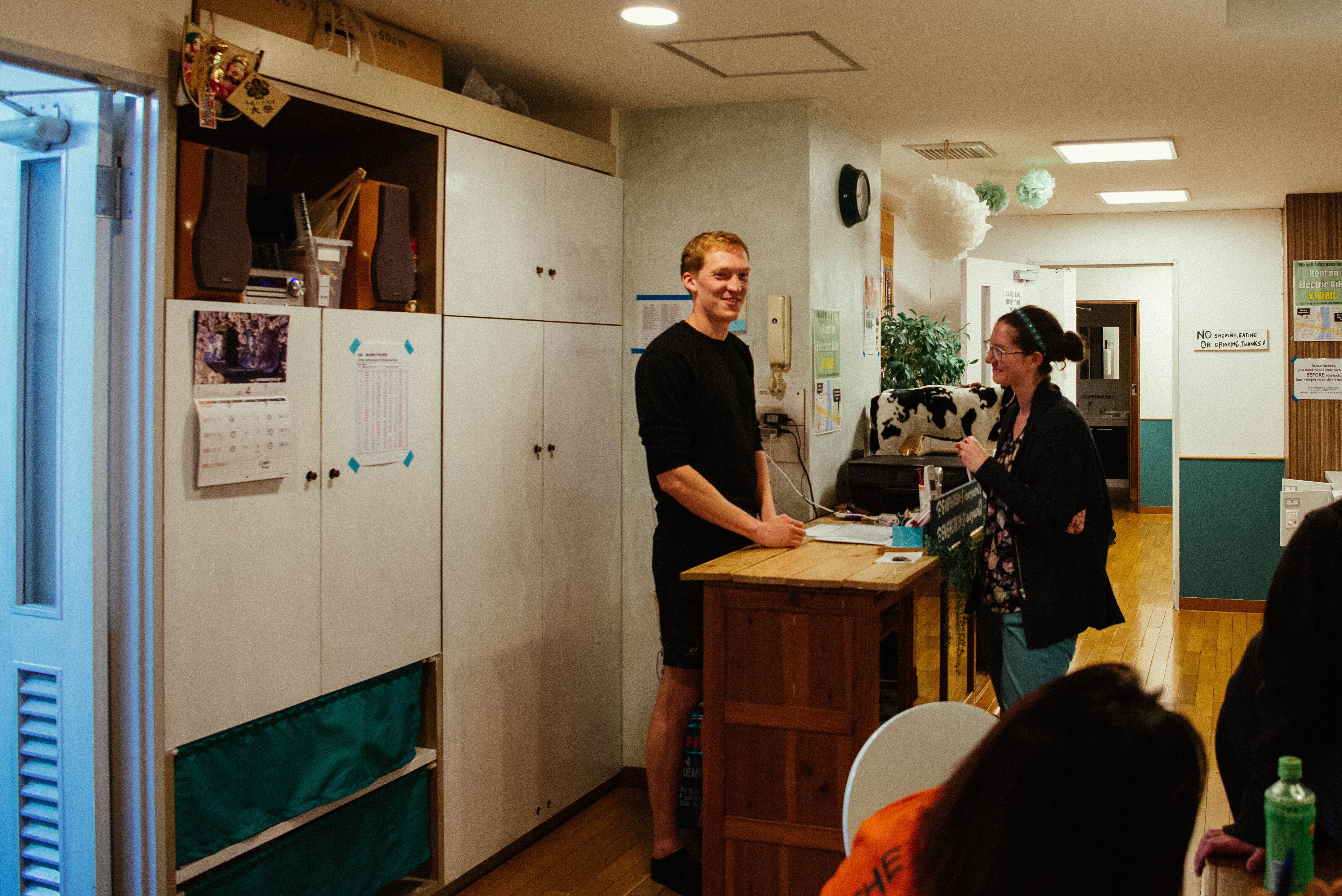 最近では、英語ナイトというイベントを継続して実施しています。これは英語を話す機会をもっと持ちたい地元の大人向けの英会話タイムで、【その時間は何としても英語Onlyで過ごす!】というシンプルなルールでやっています。ホステルのスタッフはワーキングホリデービザを保有した外国人スタッフであることも多いのですが、そのスタッフやときに宿泊客も交えながら、どんなにたどたどしくても、いわゆる”出川哲朗イングリッシュ”になりつつも、わいわい楽しく過ごしています。